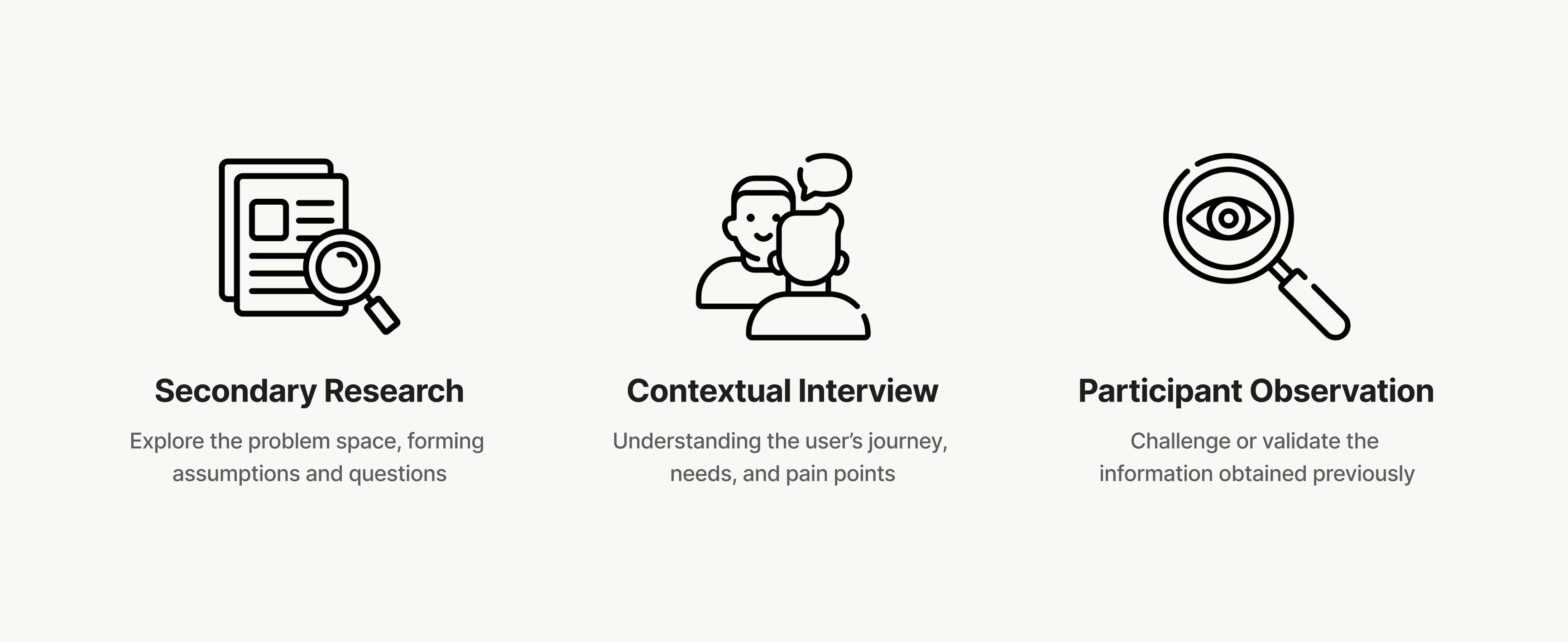 To help me get the answer, I did the contextual interview and participant observation with three participants. Combining these two methods bridged the gap between their thoughts and actions.